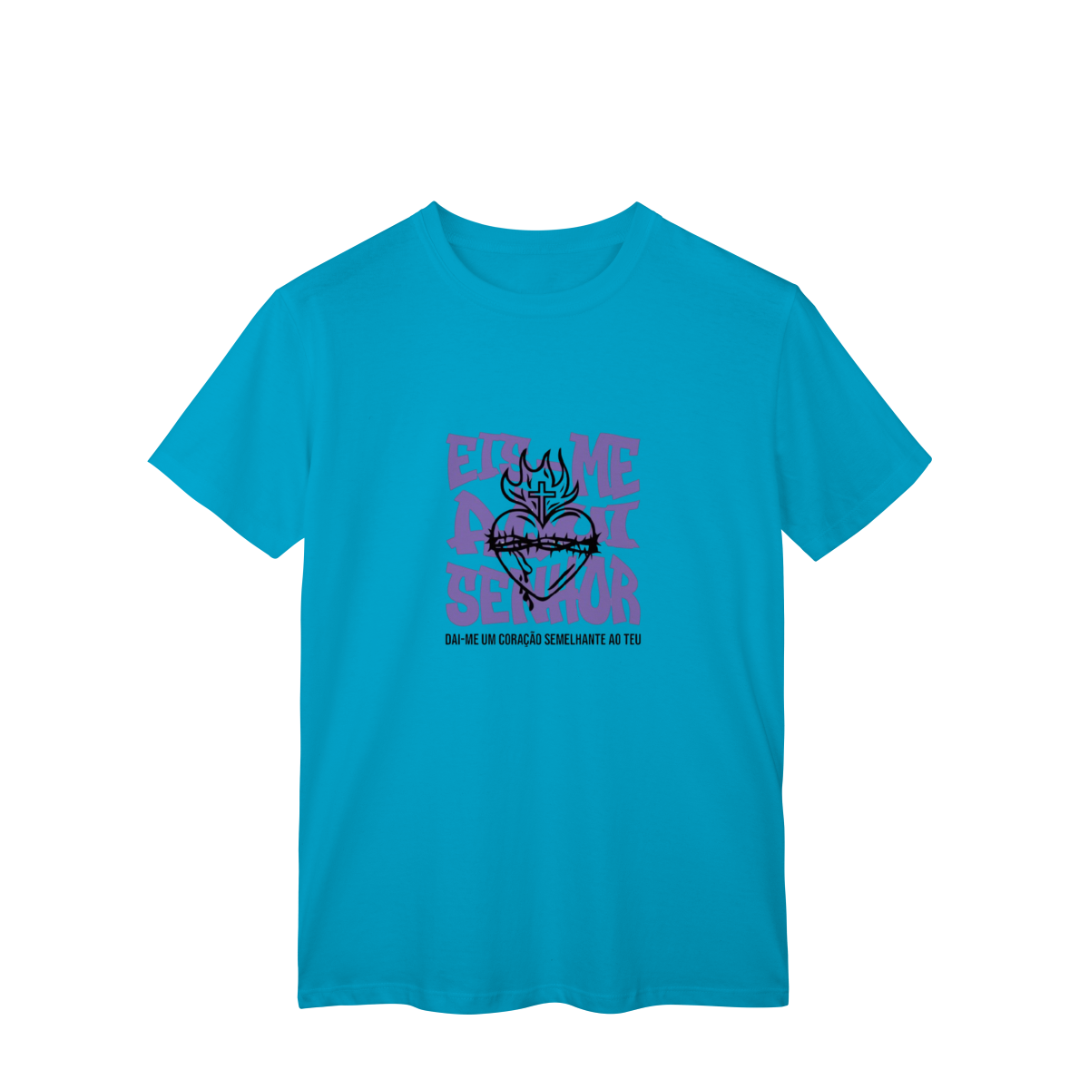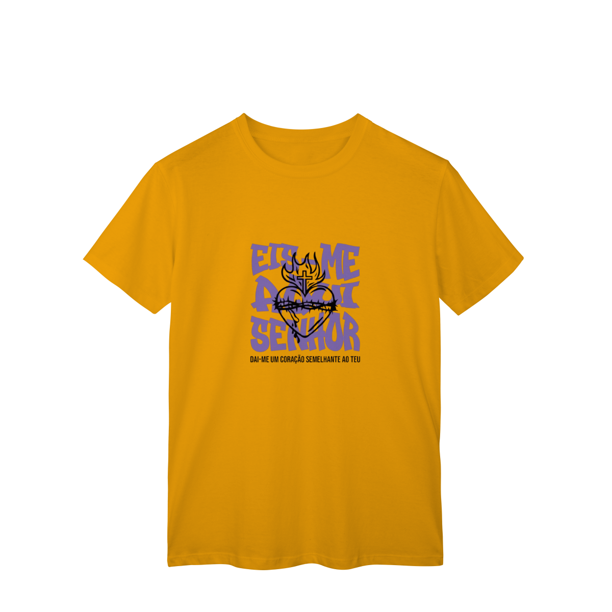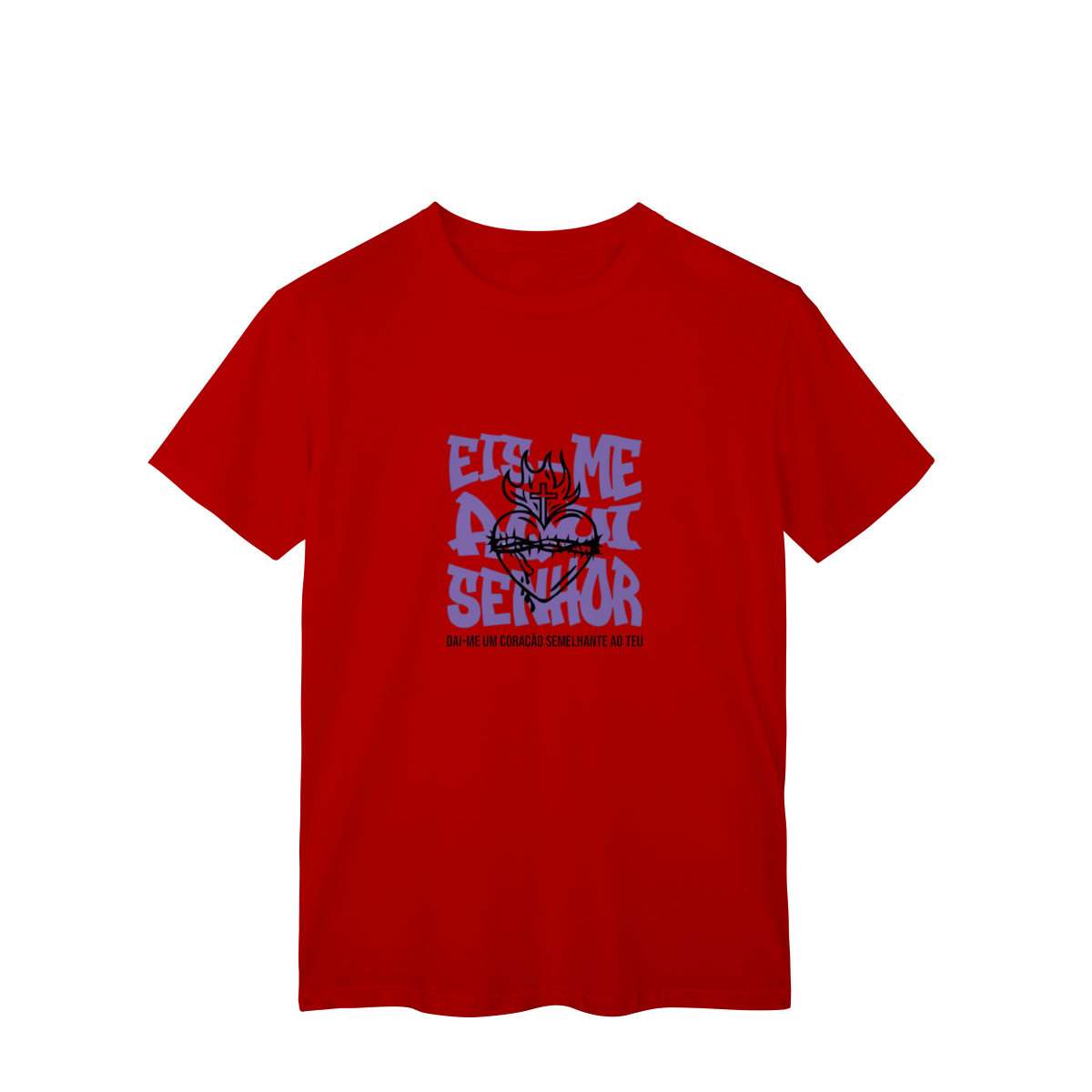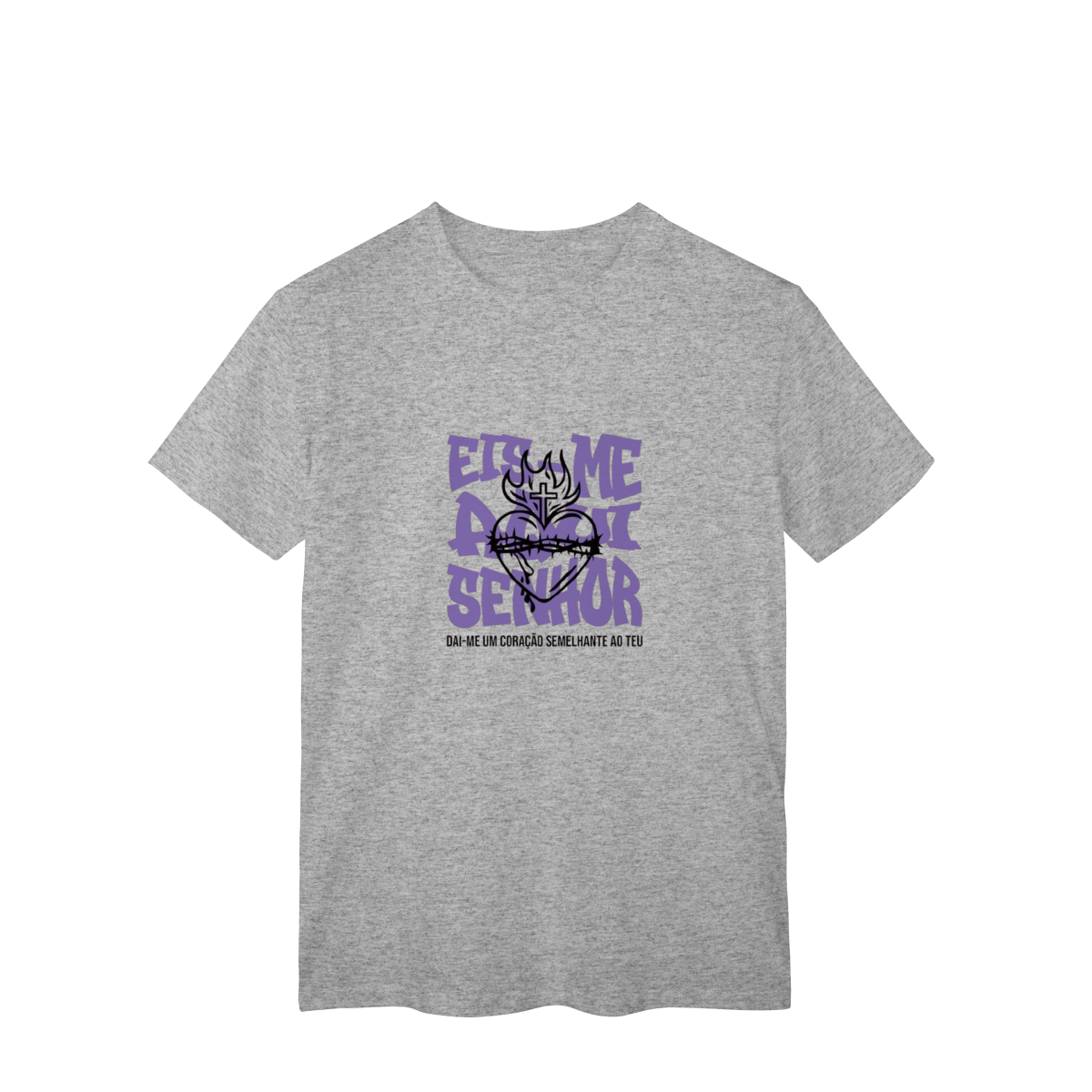 A estampa “Eis-me Aqui Senhor” traz uma mensagem profunda de entrega, disponibilidade e transformação. Com tipografia moderna em destaque e o símbolo do coração com elementos espirituais, o design transmite um chamado interior: estar pronto para viver algo maior.